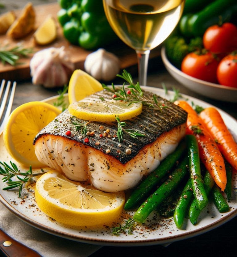 Pescado a la parrilla con limón y hierbas